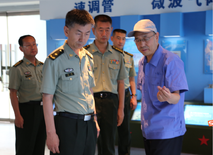 8月6日省军区副司令赵钧一行在市军分区司令员韩鹏、副司令员丁全钢等人的陪同下就公司军民融合建设和国防动员能力情况进行现场调研。先后参观了公司展示厅和数控车间。调研期间公司党委书记、董事长、总经理牛文斗向赵司令一行详细汇报了公司发展历程、业务领域、主要产品、生产配套能力以及军民融合相关项目实施进展情况。