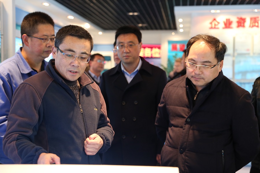 唐市长一行观看了公司宣传片,参观了电子展示厅。副总经理孙海勇对公司基本情况、生产经营、科技创新平台建设、科研经费投入、科技创新开展等情况进行了详细汇报。