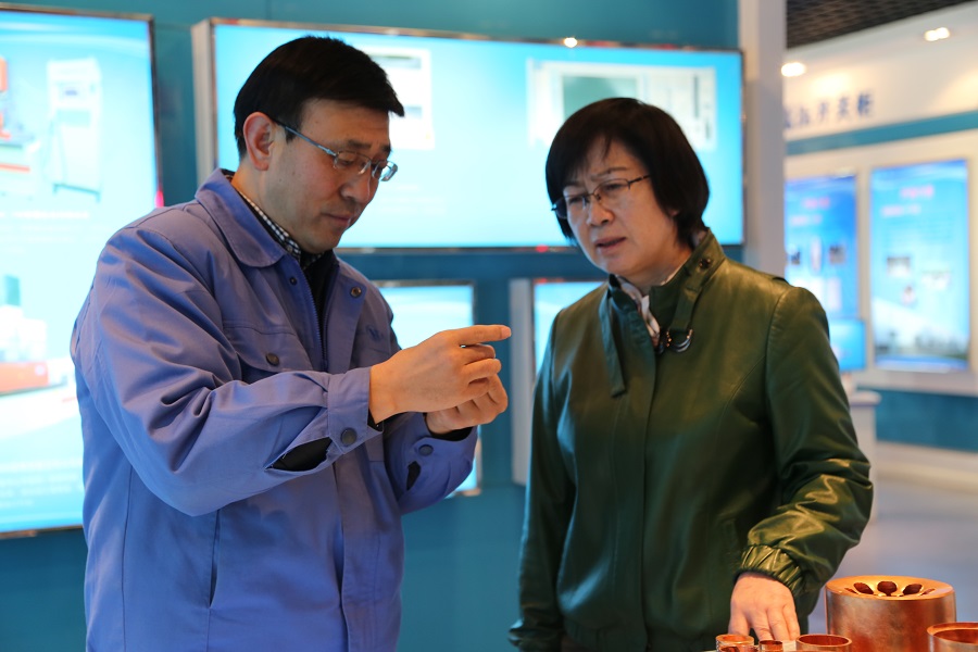 苏巡视员一行参观了公司电子展示厅。牛董事长对公司重点项目建设情况、信息化建设情况、主要产品、加工设备、产品研发情况和在生产经营活动中取得成绩以及“十四五”规划等情况进行了详细汇报。