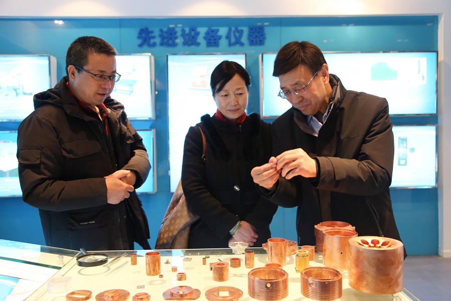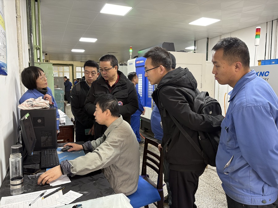 副总经理冯昱一行参观了公司电子产品展厅和机械加工厂。参观过程中,董事长牛文斗详细介绍了公司的发展历程、核心业务以及数字化转型方面的需求。公司数控设备操作人员现场演示了利用数字化进行三维建模和零件加工的编程。