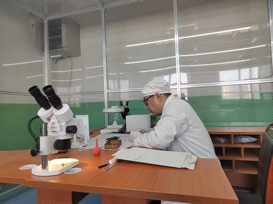 近几年公司与多家军工科研单位开展业务合作,承接的某研究所航天设备用零配件,加工要求精度高,特别对相交孔毛刺、孔底和孔壁粗糙度要求高,钳工锉修砂光难度大,而且需要在内窥镜体视显微镜下反复查看孔内光洁度、孔口毛刺是否能到达工艺要求,尤其是孔内壁需要非常精细的打磨抛光,在肉眼无法观测的情况下,加工难度非常大,极其考验操作者的技术水平。开始的几次配合,操作者使用一般锉修工具修理,用户对交付零件的相交孔及端面毛刺、孔内光洁度不满意,达不到要求。得知这一情况,张永平主动请缨,利用自己数十年的经验功底,潜心自研并多次改进锉修工具。先使用自研刮刀片,在体视显微镜下轻刮孔口及端面毛刺,直到锉修干净为止;再使用自己多日钻研出的修锉相交孔工具,配合内窥镜一点一点手工反复修整打磨,直到自己满意。在手工研磨孔内壁及孔底粗糙度时,更是考验张永平的技术水平和耐心,他夜以继日,连续几天耗在工作间,用自己一双灵巧的手和对工作的责任心,想尽各种办法,终于攻克了这一难题。经用户检验员用体视显微镜10倍放大检查,完全合格,已全部投入使用,得到了用户的高度赞赏。