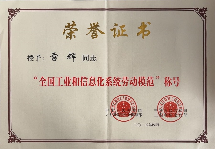 2025年全国工业和信息化系统先进集体、劳动模范和先进工作者表彰大会在北京召开。甘肃虹光电子有限责任公司工程师雷辉同志荣获“全国工业和信息化系统劳动模范”荣誉称号,这不仅是雷辉同志的光荣,也是虹光公司的光荣,平凉市的光荣,在此向雷辉同志表示热烈祝贺!