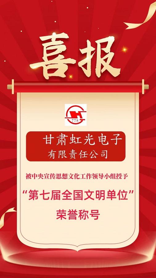 2025年5月23日,全国精神文明建设表彰大会在北京召开。在这次大会上,甘肃虹光电子有限责任公司凭借卓越的综合实力和突出的文明创建成果,荣获第七届“全国文明单位”称号,这是文明创建领域的最高荣誉,也是对虹光公司多年来坚持物质文明与精神文明协调发展的高度肯定, 更是虹光发展史上的一座重要里程碑。