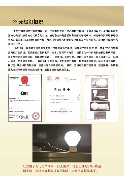 高频无极荧光灯是集电子、光学、等离子体与真空技术为一体的高科技新型电光源产品。由于采用高频电磁激励气体放电发光,没有常规电光源所必须的灯丝或电极,故名无极灯。它具有高效节能、绿色环保、长寿命等诸多优点,是国际上新型照明光源。1只85W的高频无极荧光节能灯所产生的光通量已超过10只100W白炽灯、3-6只100W具有类似节能功能灯具的光通量,而耗电量仅为白炽灯的1/10,是二十一世纪照明主导产品。可以预见,未来几十年里,高频无极荧光节能灯及相关行业将成为发展前景光明的朝阳行业。作为第四代新型光源——无极荧光节能灯使用寿命达到60000小时以上,节能效果是普通节能灯50%以上;在减排方面更是有效解决了汞的污染问题;且无极荧光节能灯所需配件属永久性产品,循环使用有效解决了资源的浪费问题;由于无极荧光节能灯无频闪,可有效保护眼睛,因此可解决青少年的近视问题。