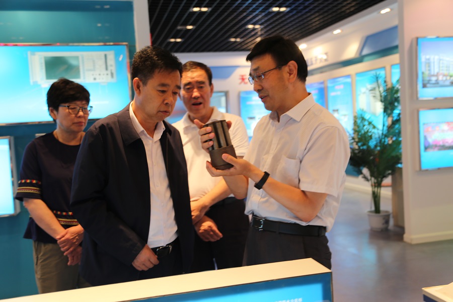 王常委一行在公司产品展示厅观看了宣传片、参观了产品展示厅,询问了公司发展现状,产业链延伸、价值链提升和供应链优化和关键核心技术攻关,产学研融合等情况。