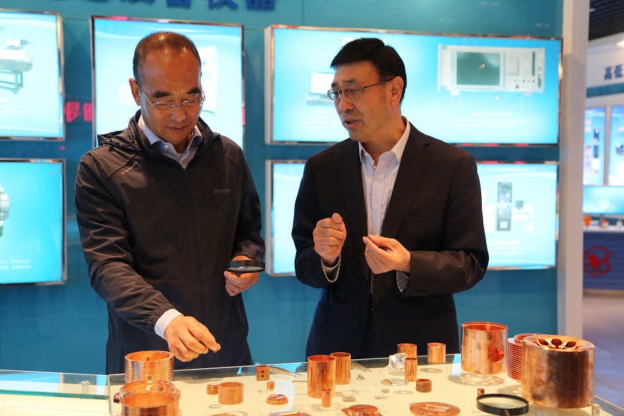 张董事长一行参观了公司展览厅,公司董事长牛文斗就公司基本情况、科技创新能力、主要产品及研发方向和取得成就向来访人员进行了介绍,并将公司在高低压配电柜、无极灯、陶瓷生产和舰船雷达用磁控管等产品方面的优势向张董事长进行了详细说明,表达了合作意向。