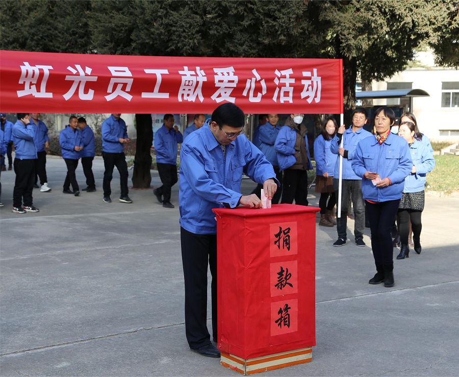 12月20日下午,虹光公司党委和工会共同发起“情系灾区,传递真情,虹光公司献爱心活动”,全体员工积极响应,公司党政领导带头募捐,将自己的一份份爱心献给灾区人民,用自己绵薄之力,表达了虹光公司全体员工对灾区人民浓浓的关爱与牵挂。在此次活动中,公司和全体员工共捐款63790元,将通过平凉红十字会送到灾区人民手中,帮助灾区人民共渡难关。